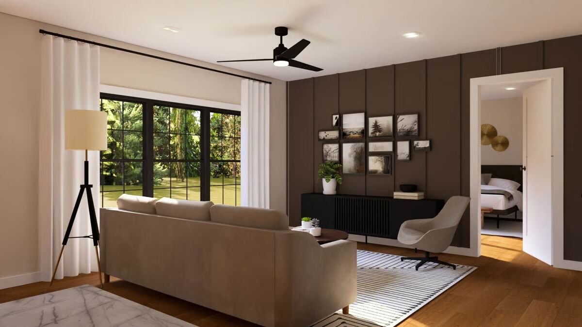 Step inside from the inviting wrap-around front porch and discover this thoughtfully designed 1-bedroom, open-concept barndominium home. Built with durable 2×6 exterior wall framing, this plan combines rustic appeal with modern functionality.