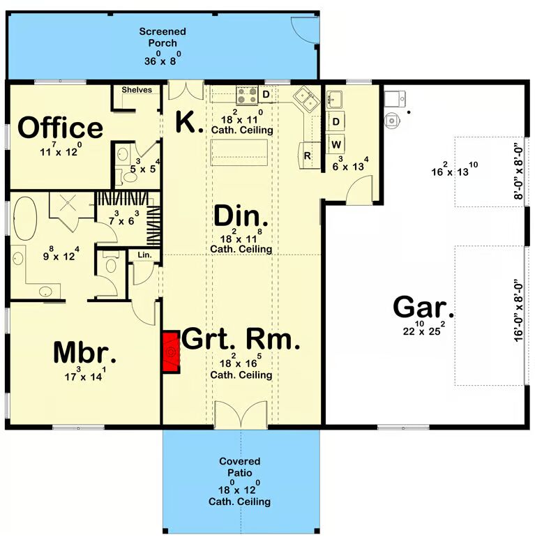 Welcome to the gallery of photos for the Barndominium-Style House with Home Office and 2-Car Garage. The floor plan is shown below: