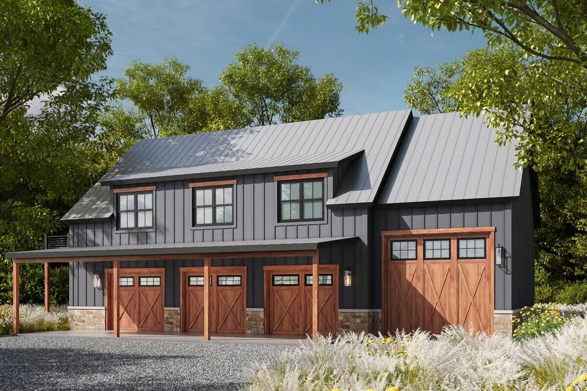 This modern detached garage apartment combines functionality and style, offering 1,628 sq. ft. of living space with 1 bedroom and 2 full baths, along with an impressive 1,995 sq. ft. 4-car garage — ideal for collectors, hobbyists, or those needing extra storage.