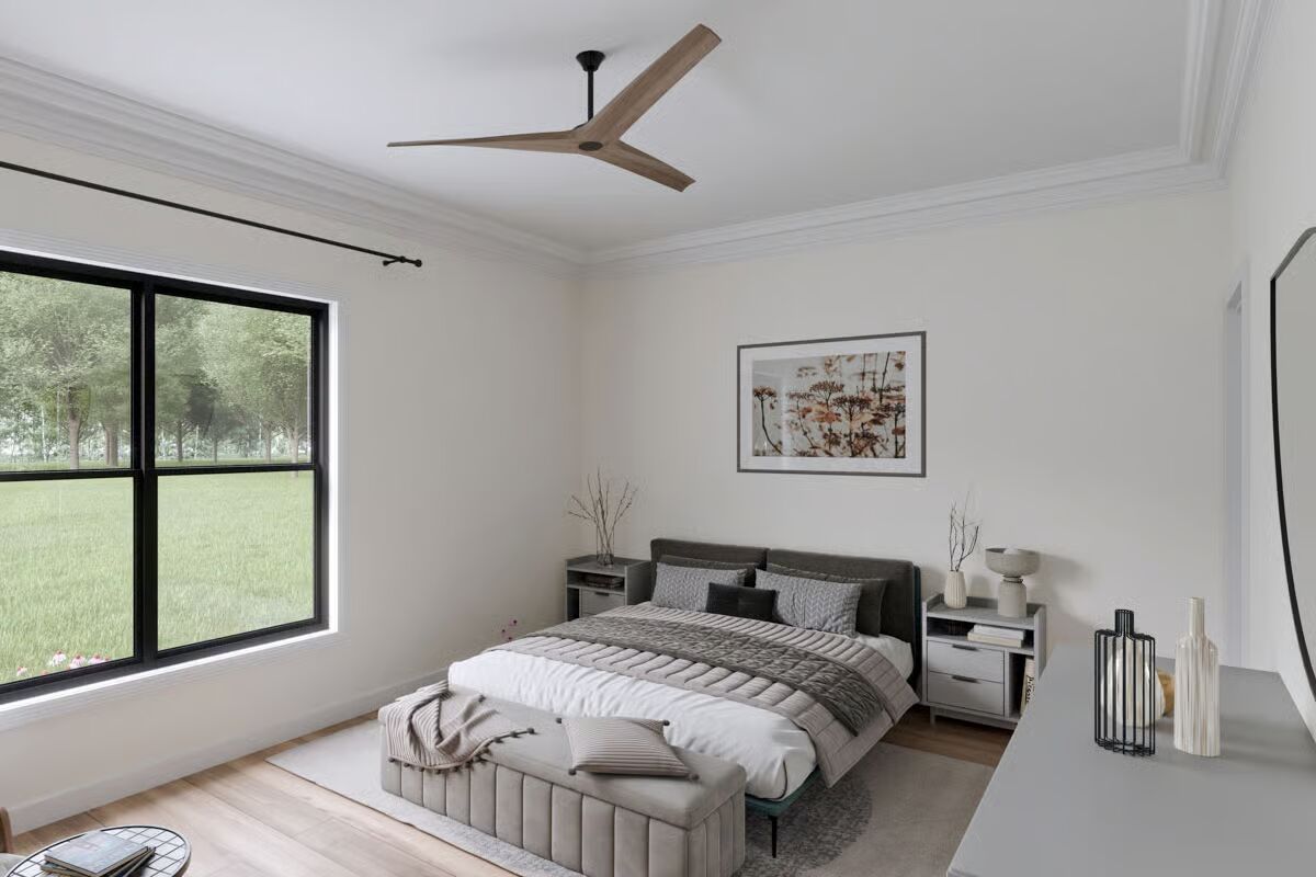 Built with durability in mind, the plan utilizes conventional wood framing with 2×6 exterior walls.