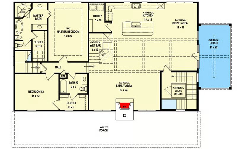 Upstairs, soaring cathedral ceilings enhance the open-concept living space, complete with a cozy fireplace and wet bar—ideal for entertaining. Two bedrooms occupy the second level, including a luxurious primary suite with a tray ceiling, spa-like 5-fixture bath, and walk-in closet.