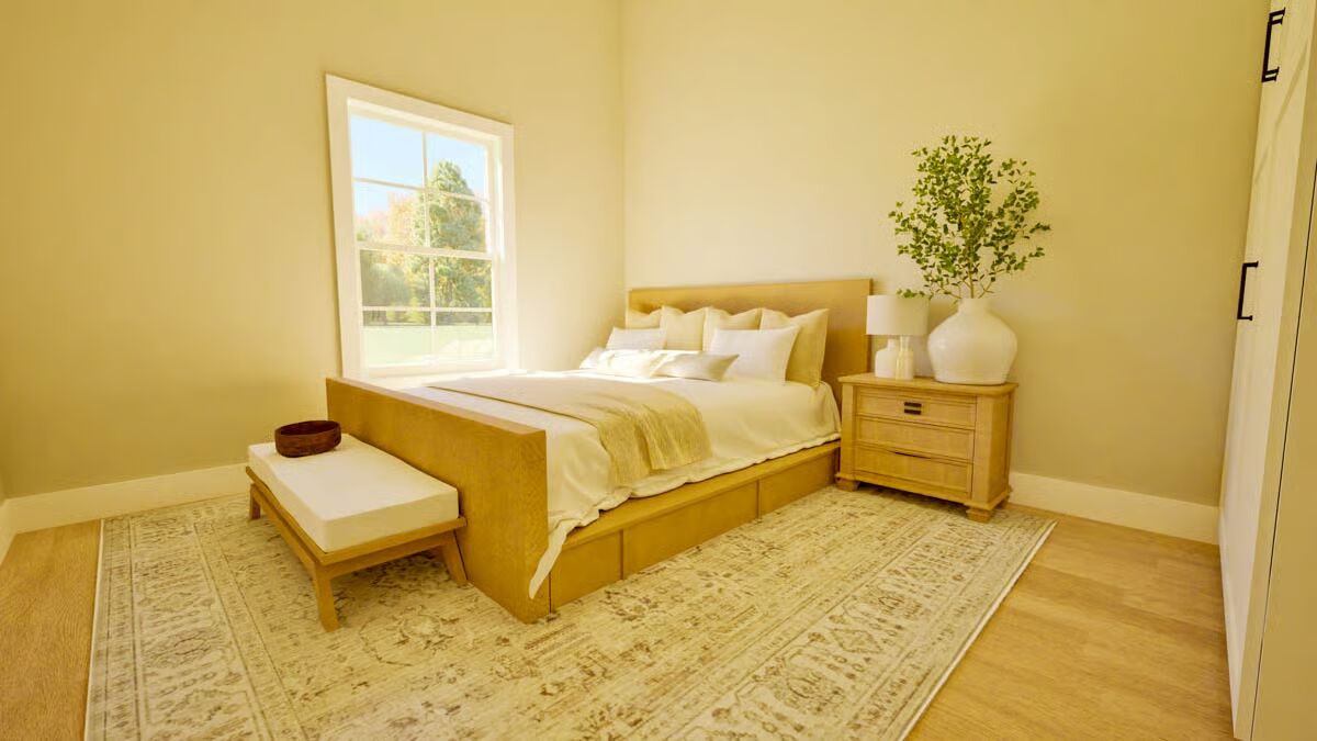 Both bedrooms are thoughtfully positioned on the main level, forming a private sleeping wing. The primary bedroom offers plenty of room to unwind, while the secondary bedroom is ideal for guests, family, or a home office.