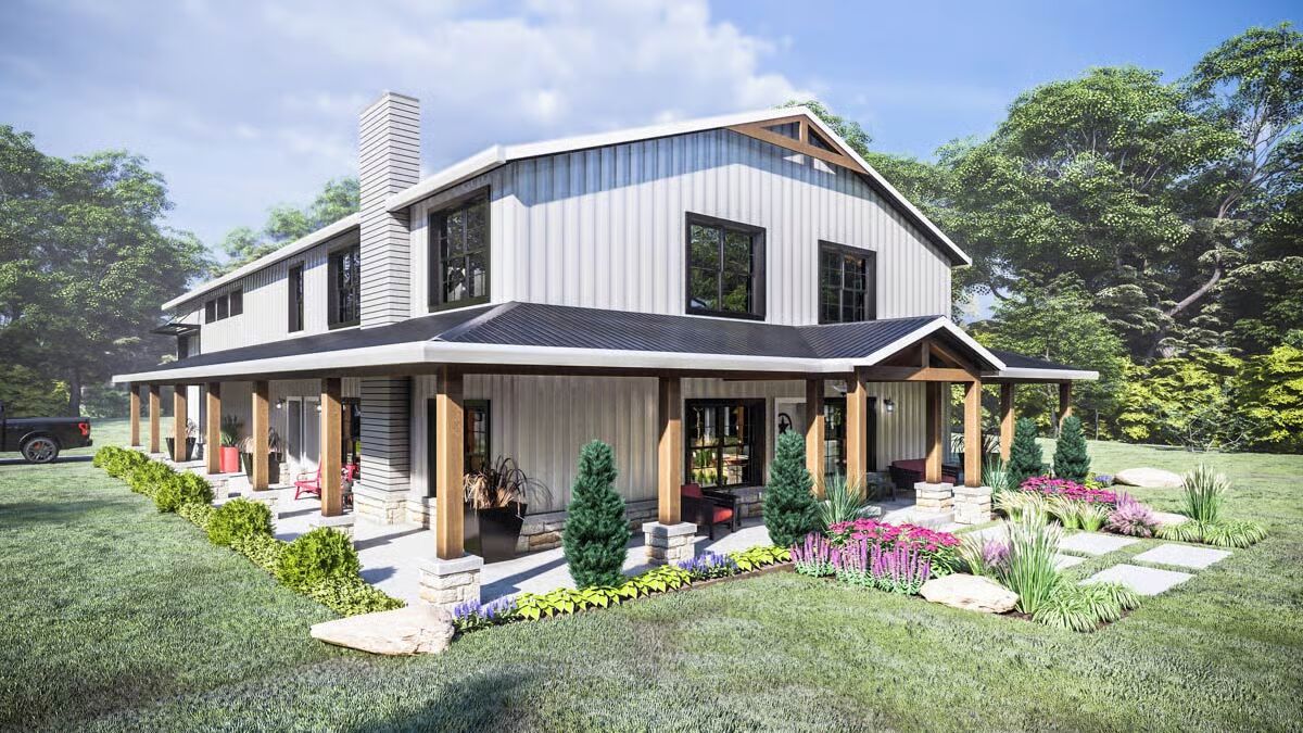 Outdoor living is at its best with an impressive 1,545 sq. ft. wrap-around porch, offering abundant covered space to enjoy morning coffee, unwind in the evenings, or entertain guests in comfort and style.
