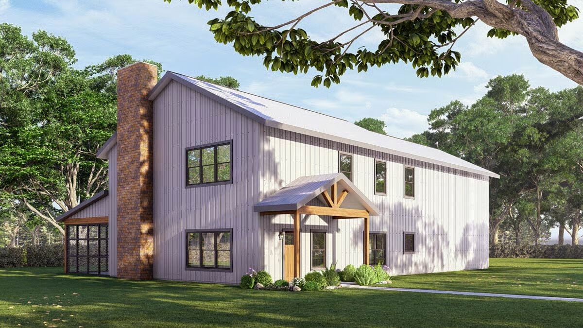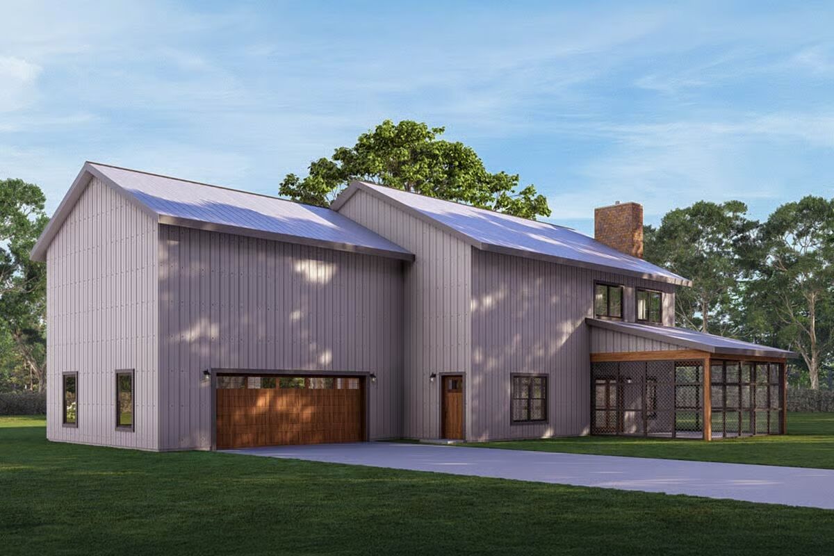 Wrapped in classic board-and-batten siding with a striking metal roof, this home blends rustic charm with modern sophistication.
