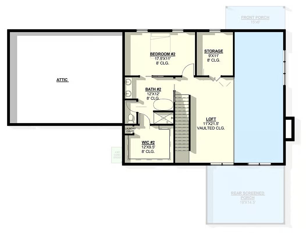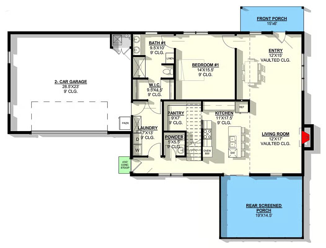 Outdoor living is equally inviting, with a charming 90 sq. ft. front porch perfect for morning coffee and an expansive 286 sq. ft. screened rear porch, ideal for al fresco dining or relaxing in the evening breeze.