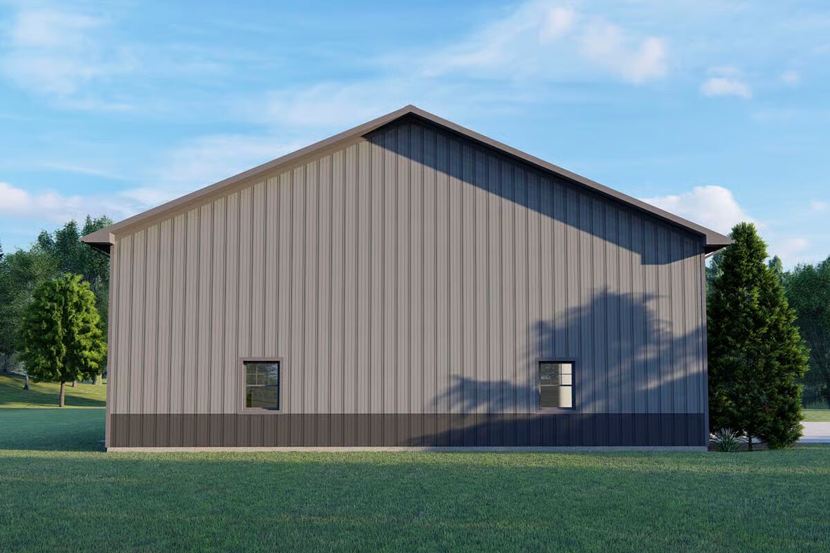 The exterior is finished with durable corrugated metal siding, combining low-maintenance living with timeless barn-inspired appeal.