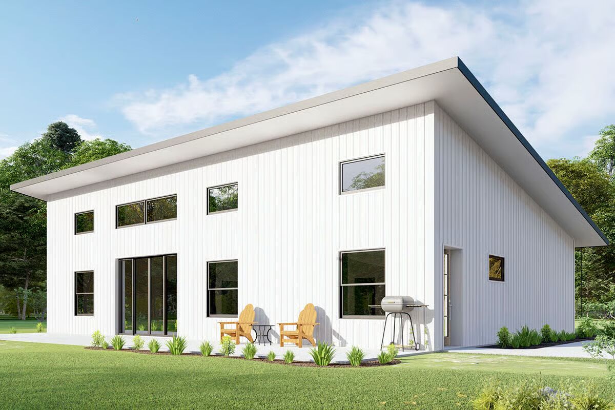 Welcome to the gallery of photos for the 3-Bedroom 1750 Square Foot Contemporary Barndominium-Style House. The floor plan is shown below: