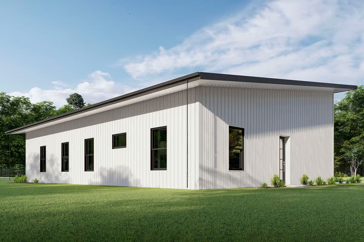 This plan is designed with a Pre-Engineered Metal Building (PEMB) in mind—the most common and efficient structure for barndominiums.