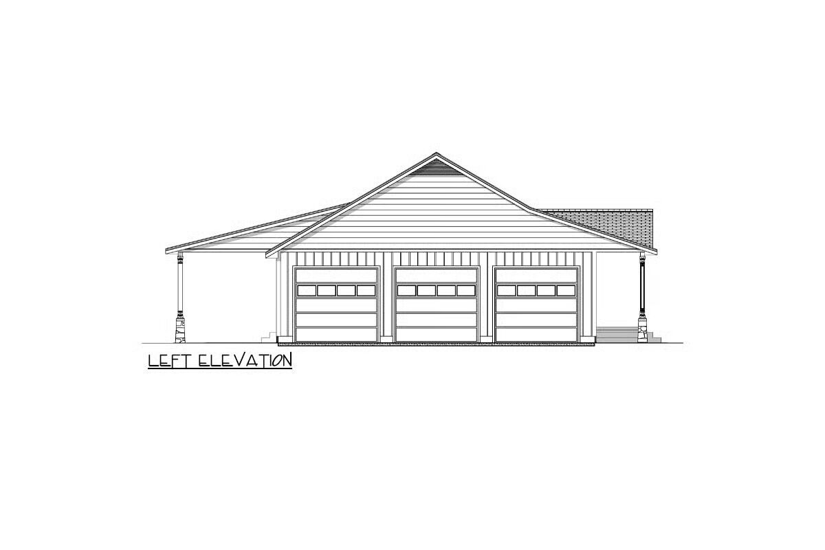 The home is paired with a versatile 1,235 sq. ft. garage, featuring three front-facing bays with 10′ x 9′ overhead doors plus a rear bay with an 8′ x 7′ door for added convenience. With 11-foot ceilings, this space is ideal for vehicles, storage, or workshop use.