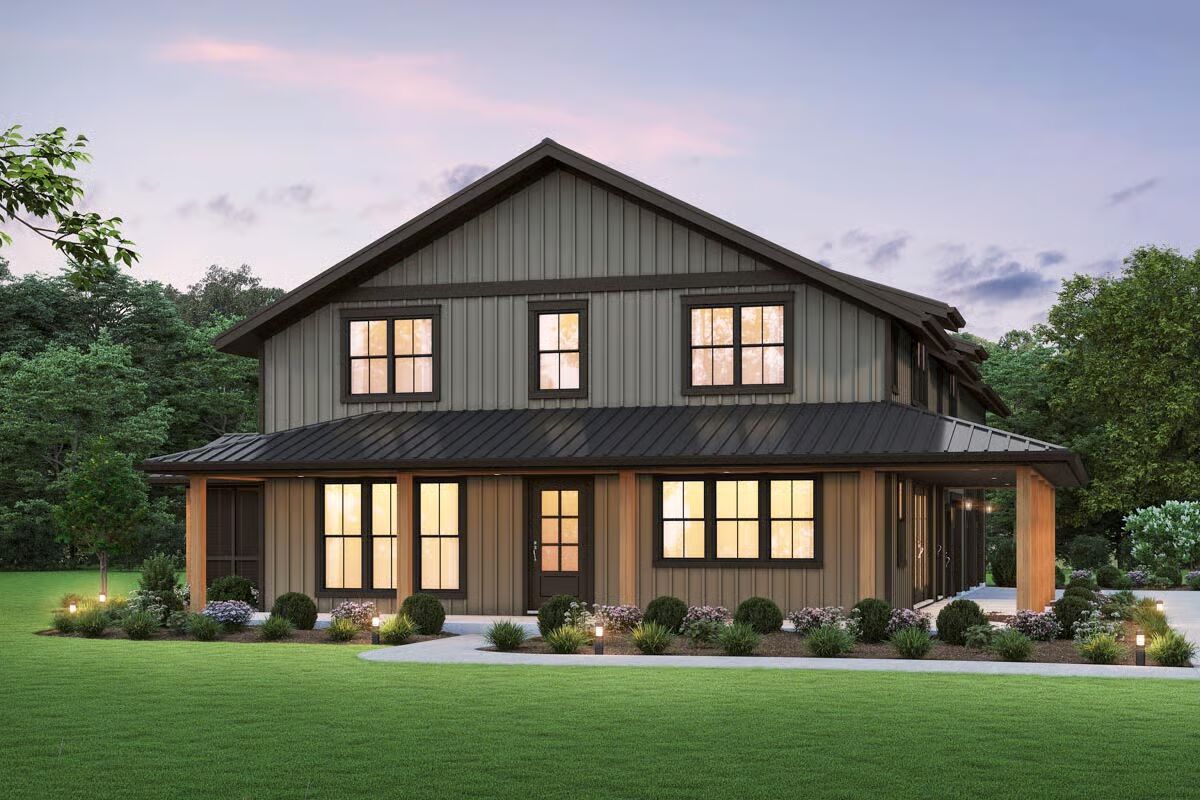 Welcome to the gallery of photos for the 2700 Sq Ft Barndominium-Style Home with Wrap Around Porch and RV Garage. The floor plans are shown below:
