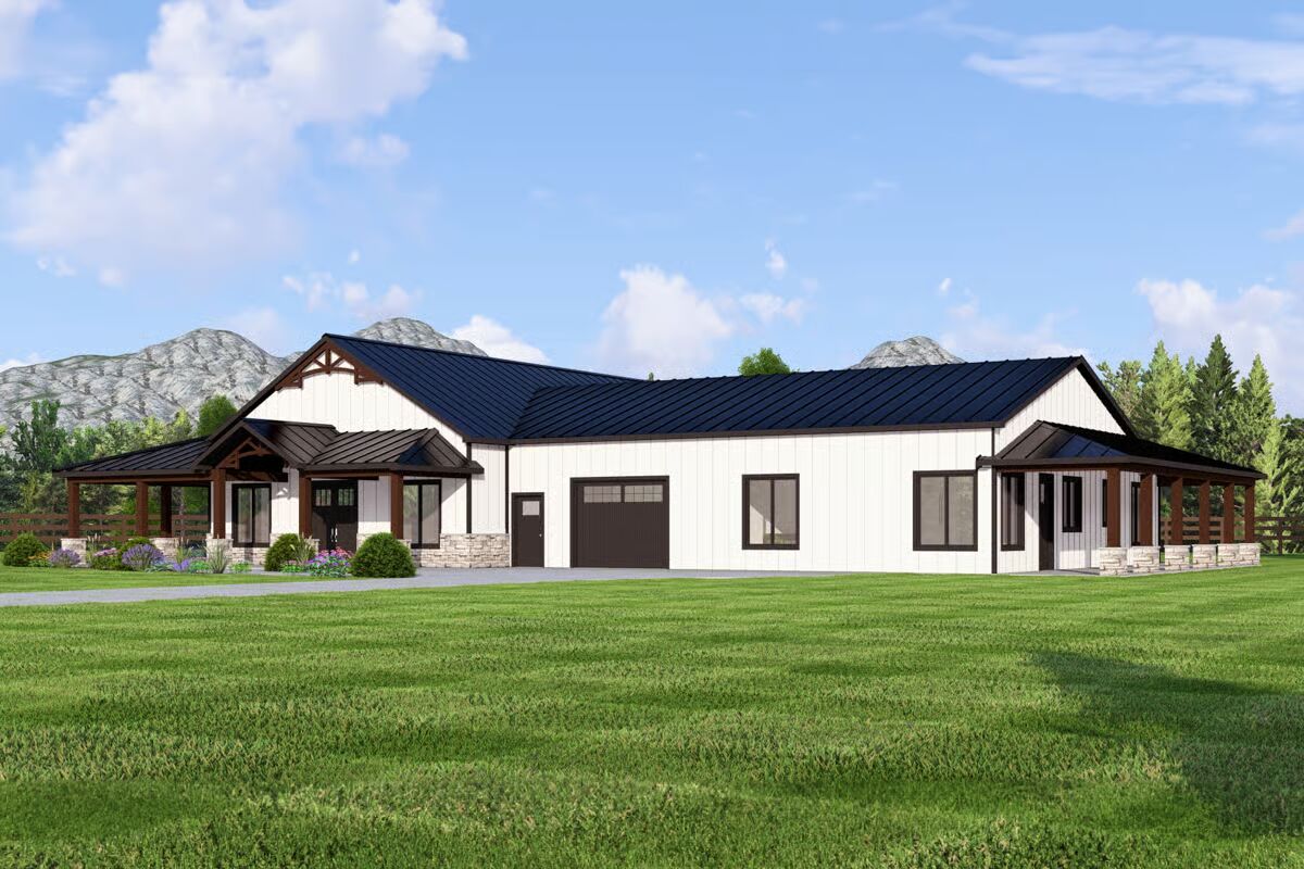 This versatile barndominium-style home offers multi-generational living with a thoughtful layout and abundant space.