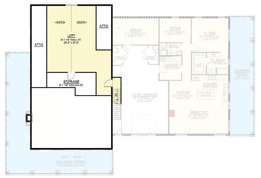 On the opposite side of the 799 sq. ft. garage, a spacious 1-bedroom apartment delivers 1,388 sq. ft. of living space along with its own 490 sq. ft. porch.