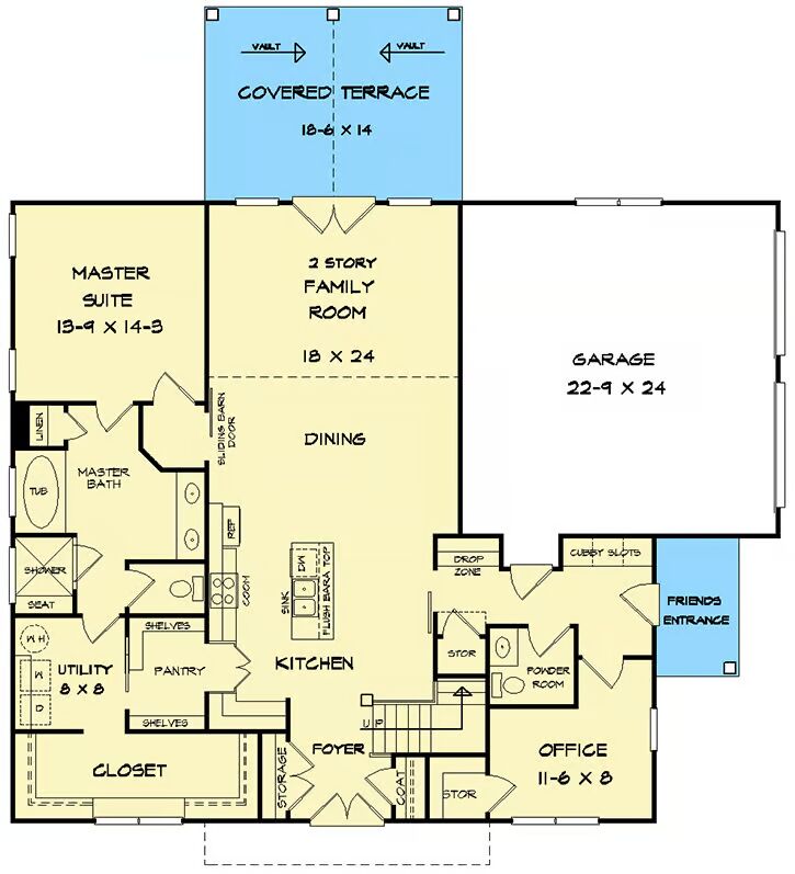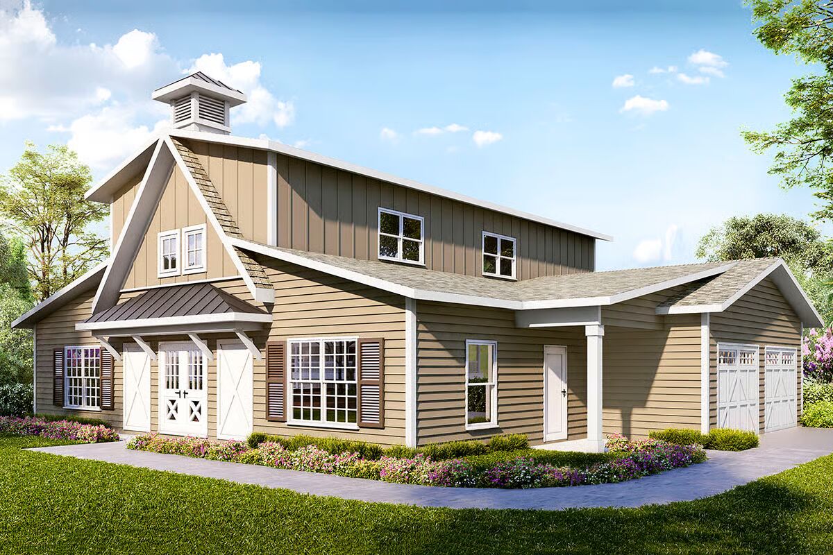 The open-concept floor plan, main-level master suite, and dedicated home office make this design both inviting and practical.