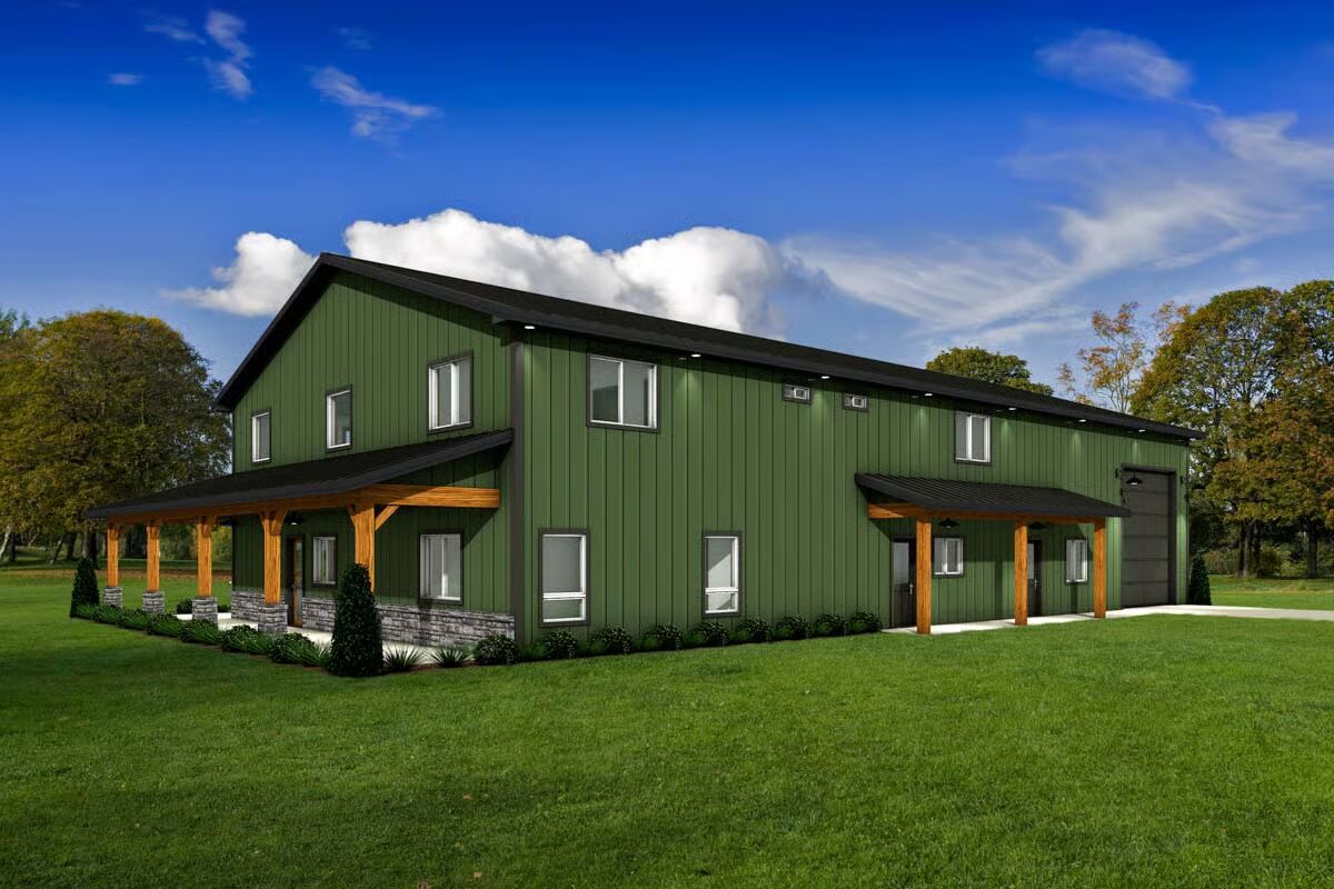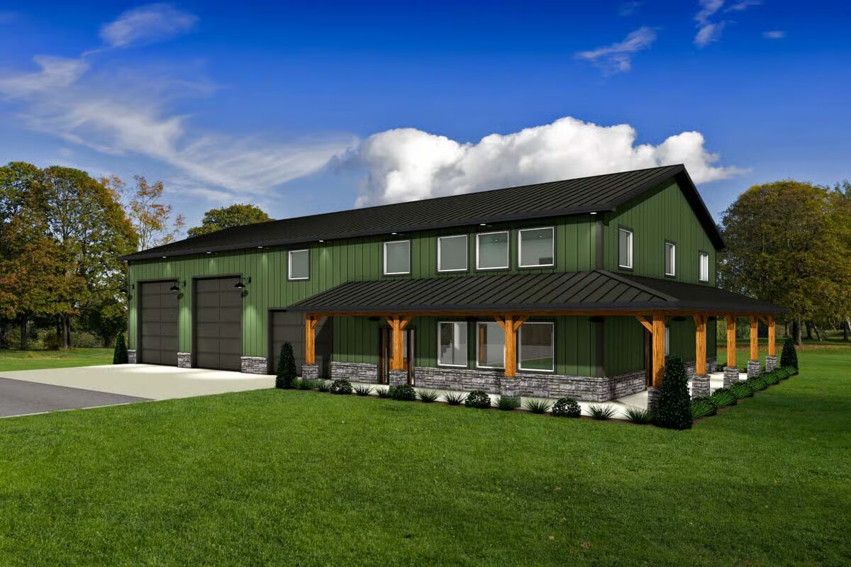 Blending rustic character with modern comfort, this Barndominium plan delivers exceptional curb appeal and flexible living for today’s lifestyle.