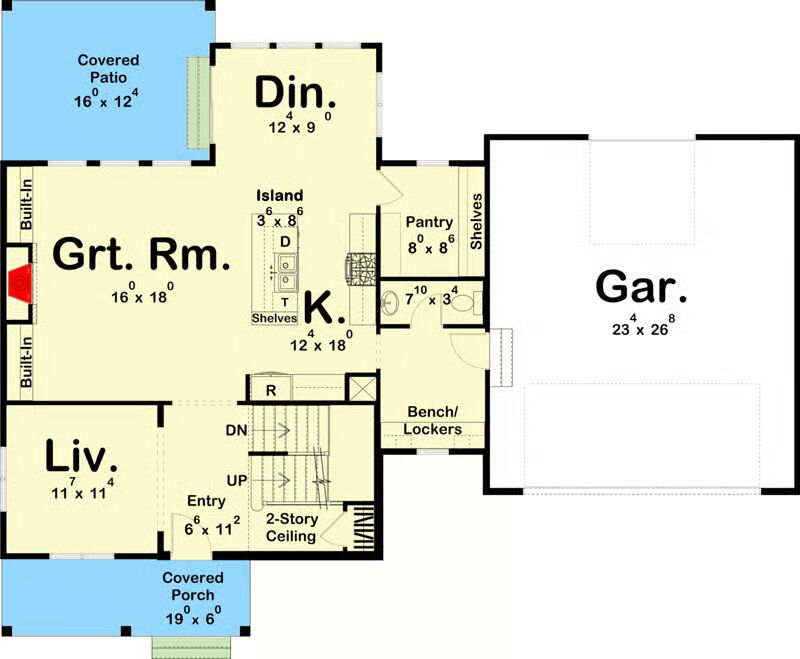 A mudroom with built-in storage keeps clutter out of sight, while the oversized 2-car garage includes a rear access door, ideal for lawn equipment or hobby use.