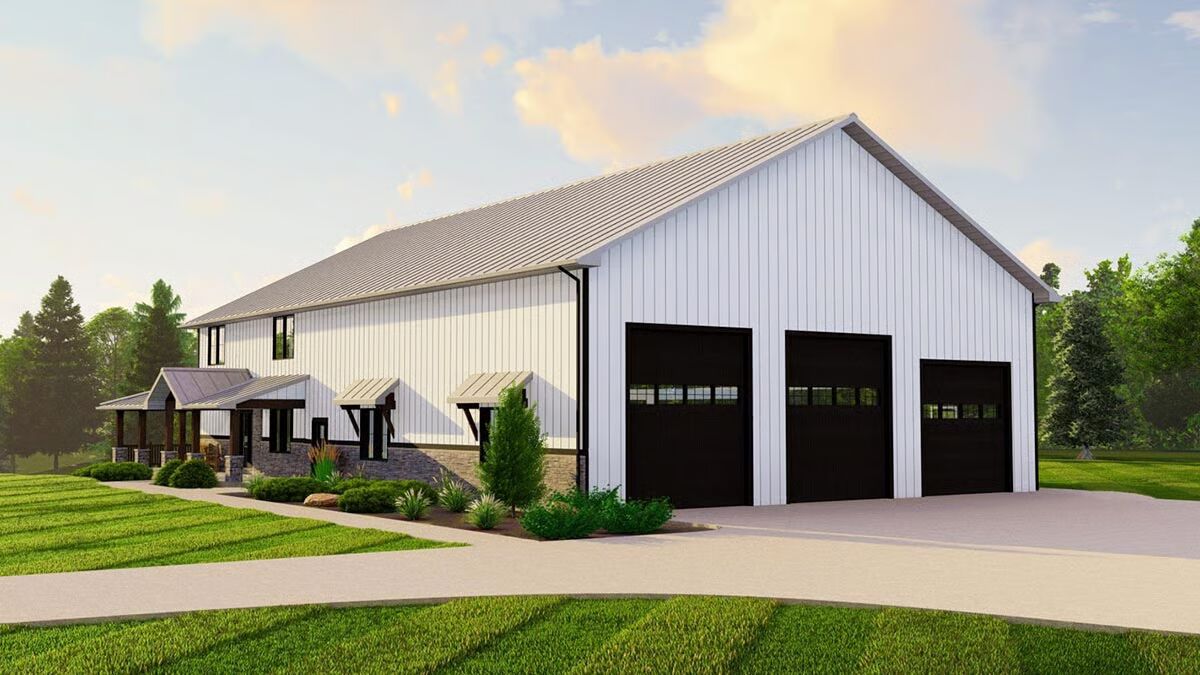 Welcome to the gallery of photos for the Barndominium-Style House with Home Office and Oversized Side Entry Garage and Shop. The floor plans are shown below: