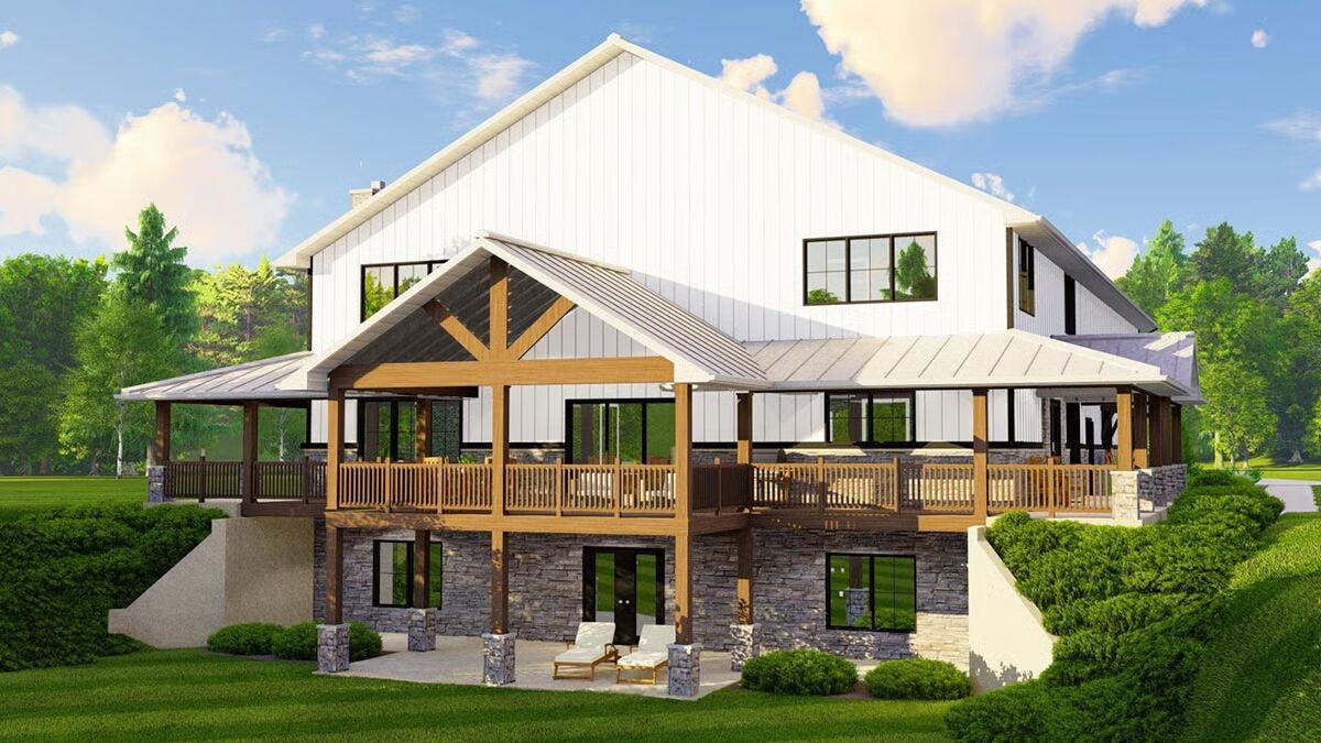 This 3-bedroom stick-framed Barndominium-style home (built with 2×6 exterior walls) blends comfortable living with practical workspace. Perfectly suited for a side-sloping lot, the wraparound porch and deck provide the ideal spots to relax and take in your views.