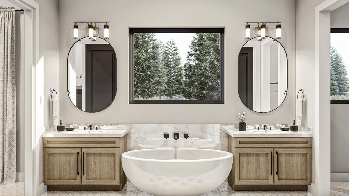 The master suite is a private retreat with a spa-like bath and a generous walk-in closet offering direct access to the laundry room. Two additional bedrooms each include walk-in closets, ensuring ample storage for the whole family.
