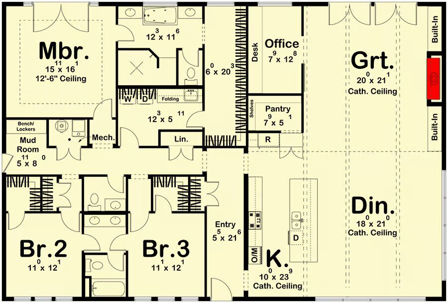 Welcome to the gallery of photos for the Barndominium-Style House with Home Office. The floor plan is shown below: