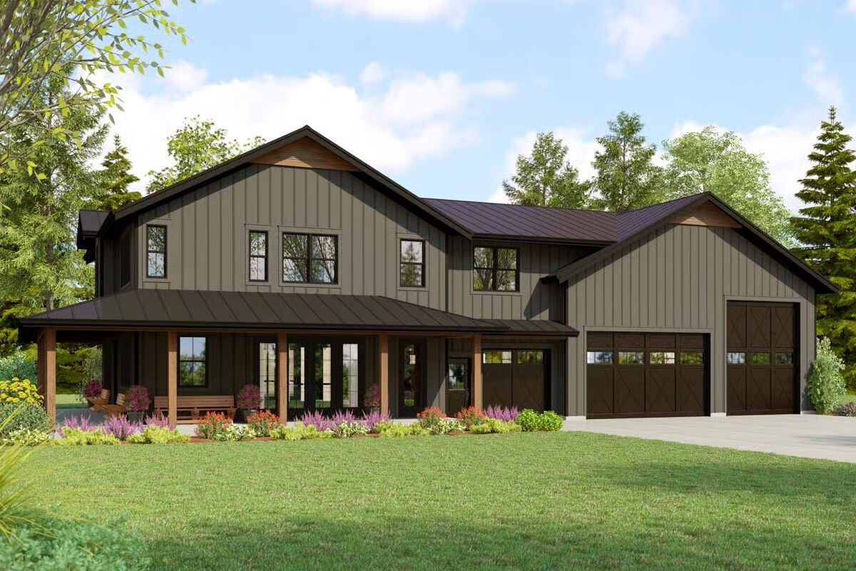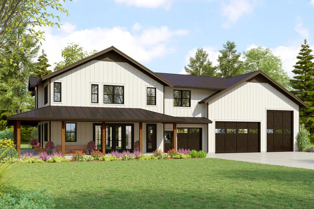 This stunning 3-bedroom, 3.5-bath barndominium-style home offers 2,663 sq. ft. of heated living space paired with an impressive 2,060 sq. ft. garage, complete with an RV bay and tandem-style parking for up to six vehicles.