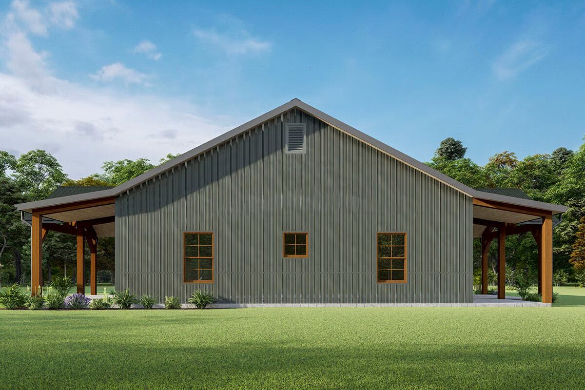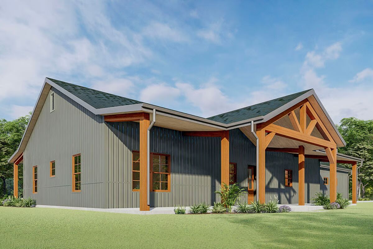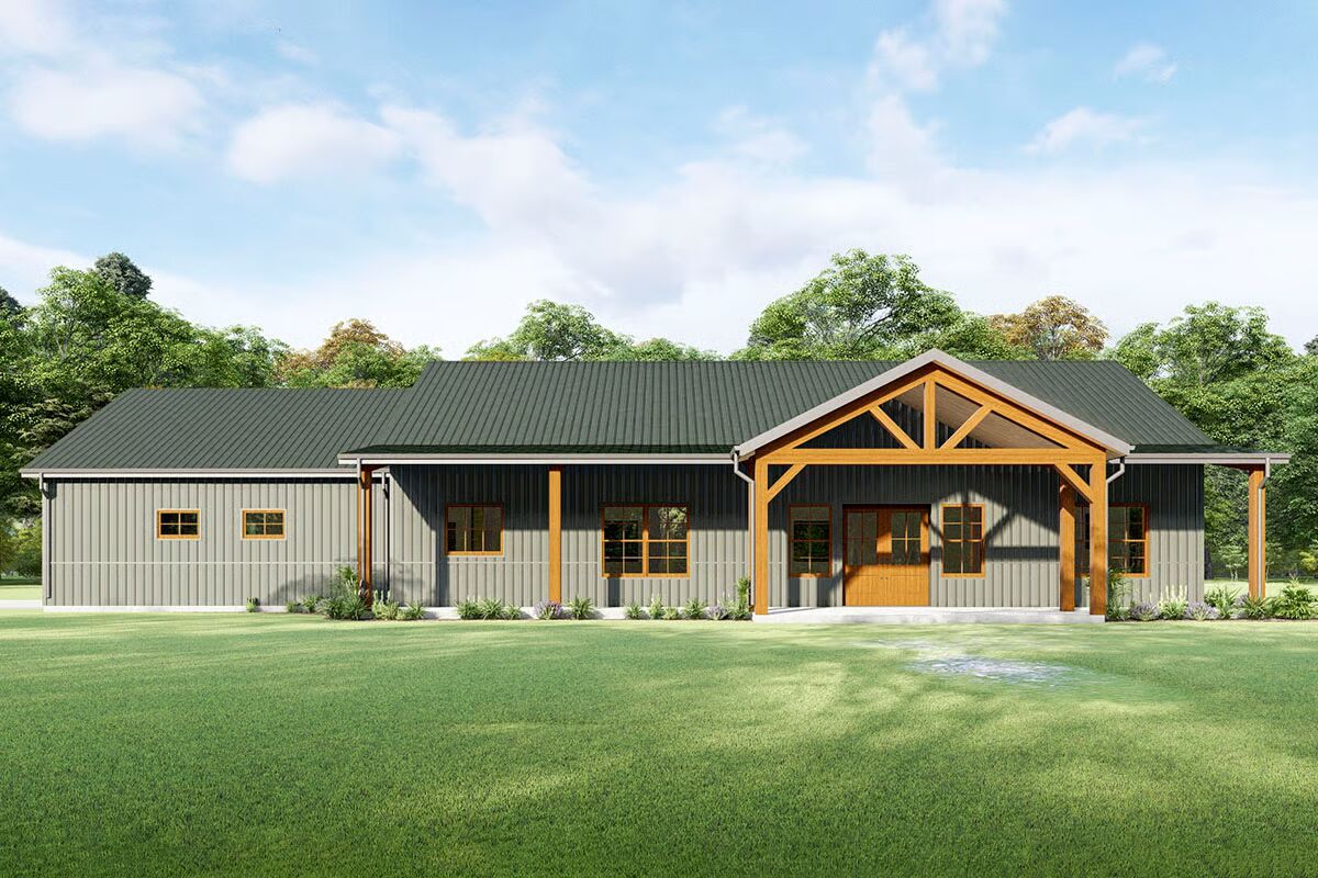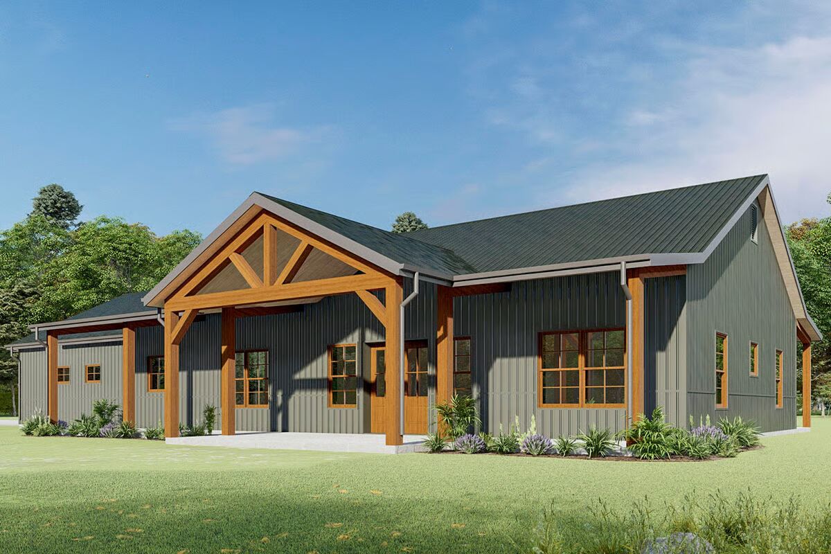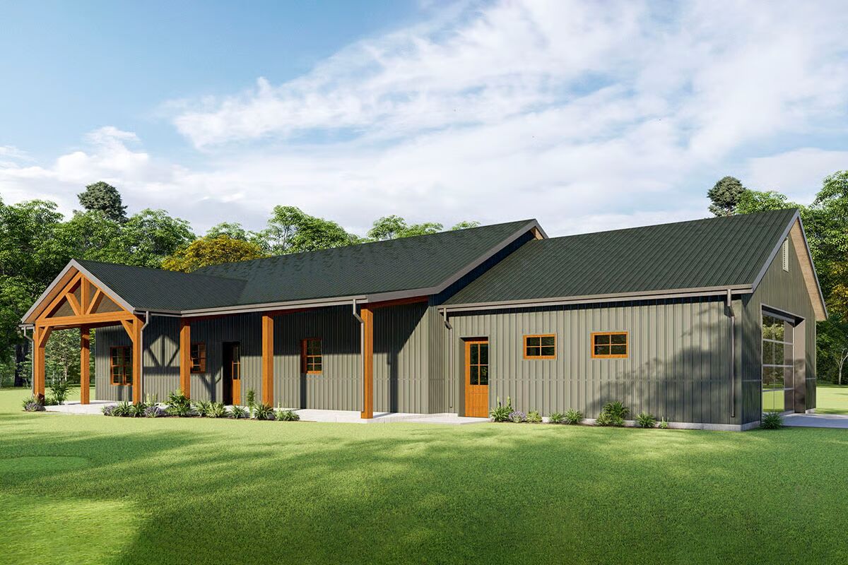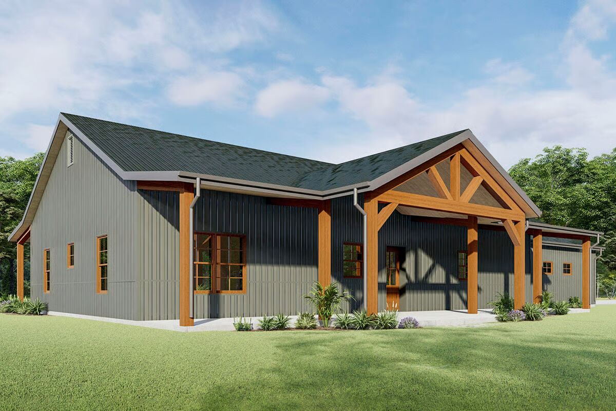 Delivering 1,925 sq. ft. of thoughtfully designed living space, this Barndominium plan combines rustic charm with modern efficiency.