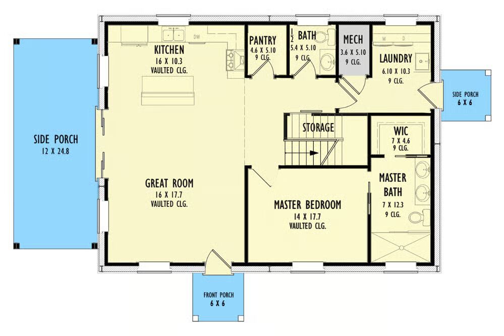 Welcome to the gallery of photos for the Boxy Barndominium-Style House with Vaulted Side Porch. The floor plans are shown below: