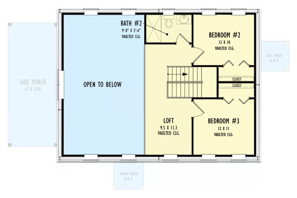 A charming covered entry porch with timber supports—one modest on the left and a grander one on the right—adds character to the home’s clean 56′ x 36′ footprint.