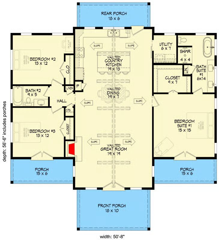 Welcome to the gallery of photos for the Country Barndominium House with Vaulted Great Room – 1761 Sq Ft. The floor plan is shown below: