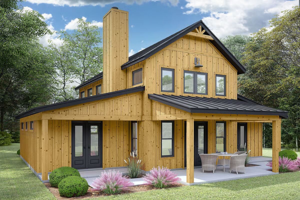 Built in a barndominium style with conventional 2×6 framing, this plan combines timeless design with lasting durability. Perfect for families or those seeking a stylish yet functional single-level layout, this home balances open living with private retreats.