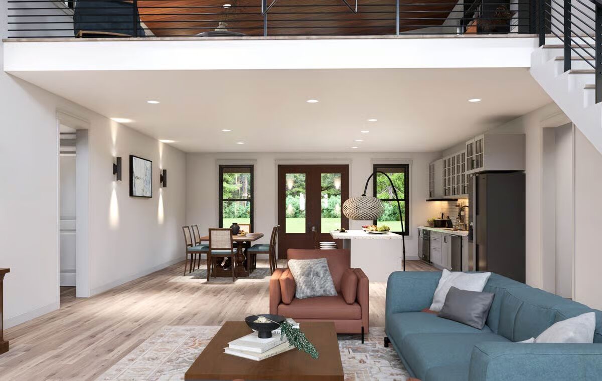 Upstairs, an open loft overlooks the Great Room, adding additional flexible living space. An optional second-floor flex room can be finished to include a bathroom and closet, ideal for a home office, guest suite, or creative studio to suit your lifestyle.