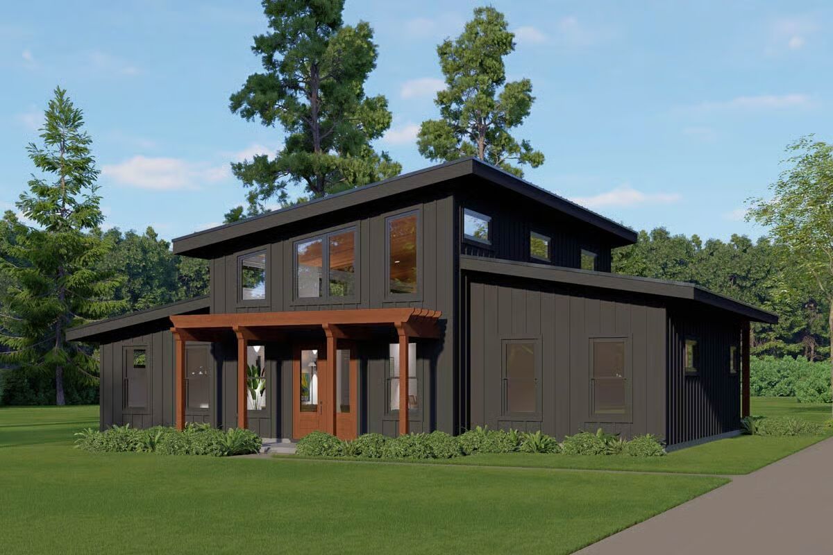 Experience modern country living in this striking 2,583 sq. ft. Contemporary Barndominium, offering 3 bedrooms, 2 full baths, and a sleek architectural profile that blends style with comfort.