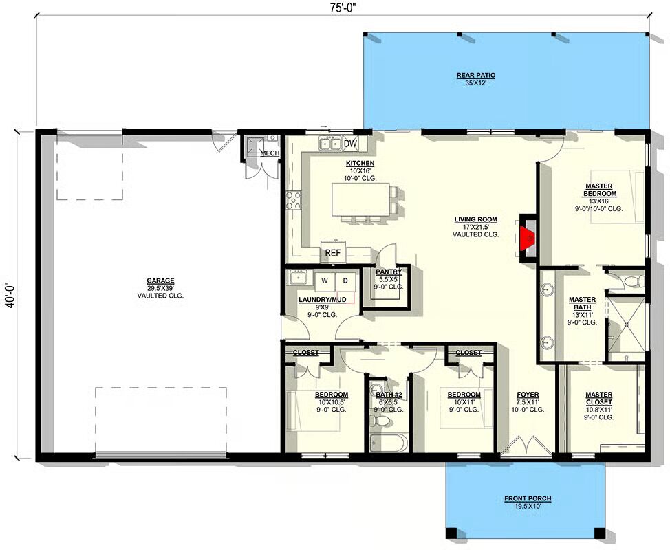 Welcome to the gallery of photos for the Modern Barndominium House with Vaulted Living and 3-Car Garage. The floor plan is shown below: