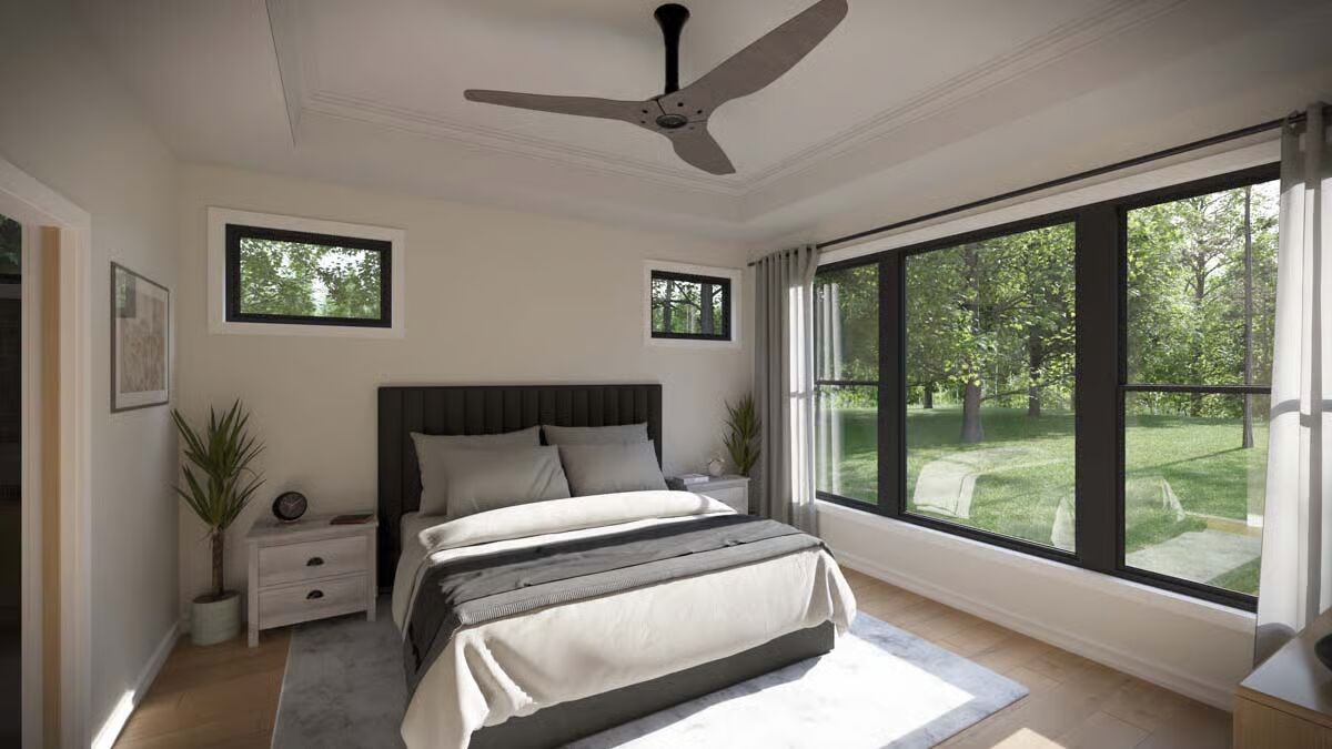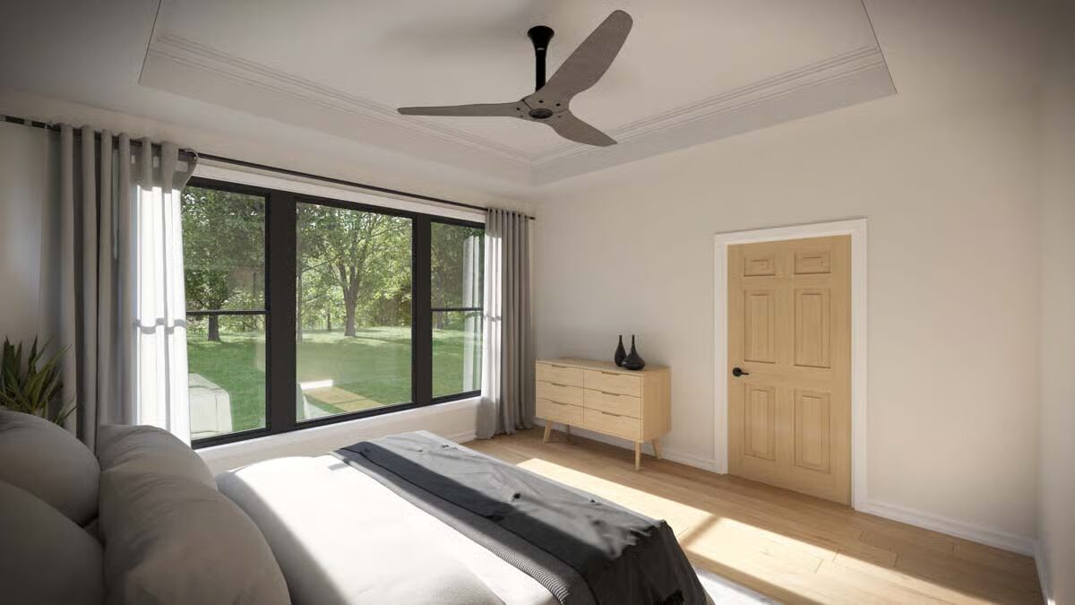 The main-level master suite is a true sanctuary, featuring a tray ceiling, spa-inspired ensuite bath, and dual walk-in closets. Upstairs, two additional bedrooms share a full bath, offering comfort and privacy for family or guests.