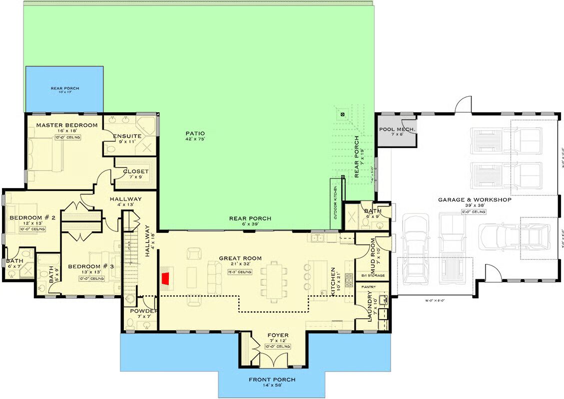 Welcome to the gallery of photos for the New American Barndominium House with Two-Story Great Room – 3111 Sq Ft. The floor plans are shown below: