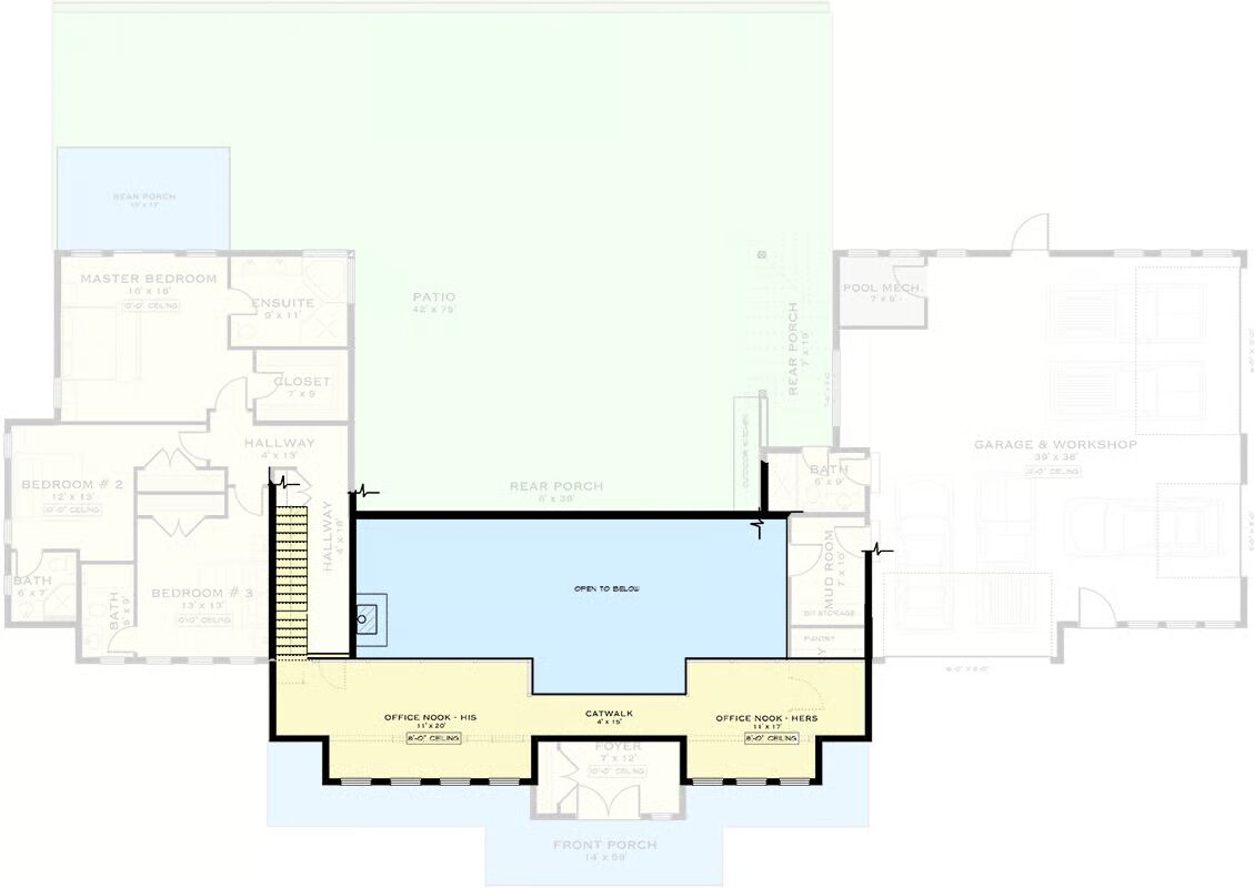 Designed with modern lifestyles in mind, this home includes dual office nooks, a versatile mudroom, and seamless indoor-outdoor living with a spacious rear porch and patio.