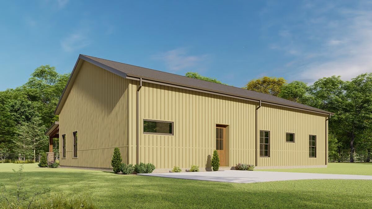 Designed with a Pre-Engineered Metal Building (PEMB) in mind, this plan ensures durability and quicker build times while allowing flexibility for interior finishes. For those preferring traditional construction, a 2×6 framed exterior option is also available.