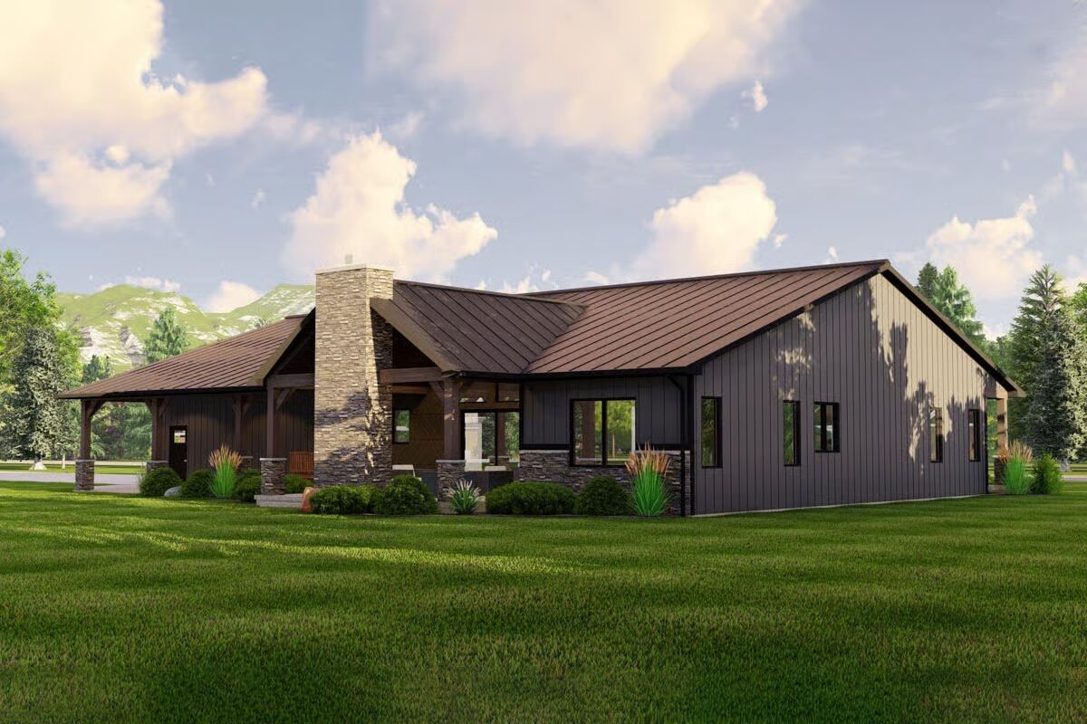 Embrace rustic charm and modern function with this one-story country Craftsman barndo-style home, designed for indoor-outdoor living.