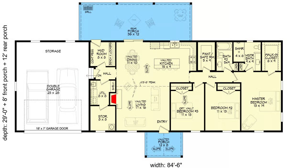 Welcome to the gallery of photos for the Simple Ranch House with Outdoor Kitchen and Mudroom. The floor plan is shown below: