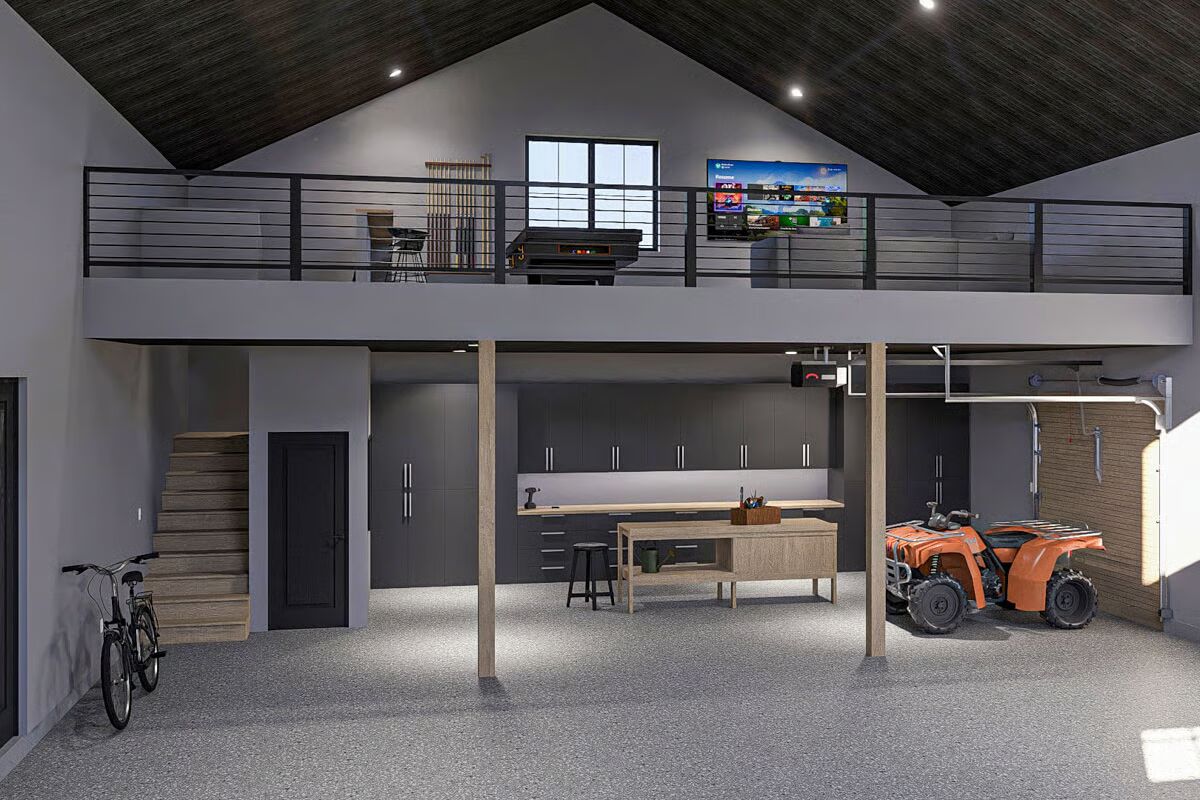 The home includes a 3-car garage with an attached workshop and an upstairs loft overlooking the garage—ideal for hobbies, projects, or additional storage.