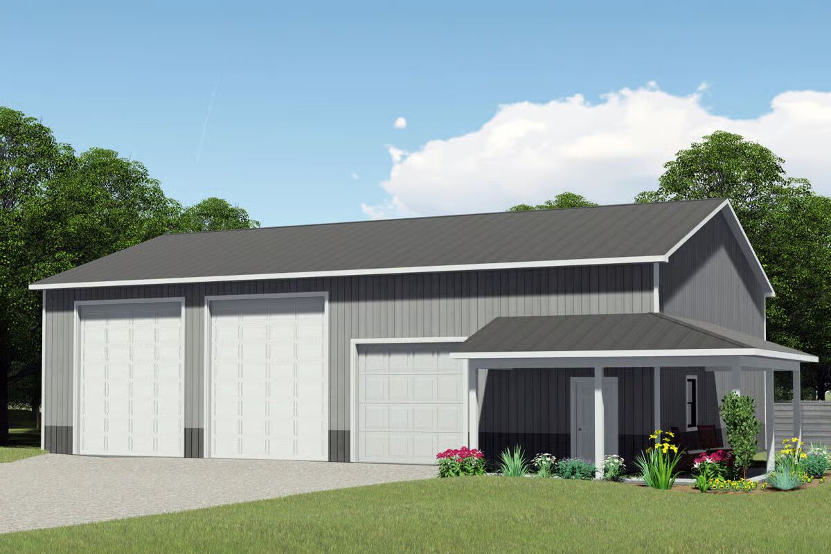This impressive 2,400 sq. ft. Country Barndominium-style structure combines the practicality of a 3-car detached garage and workshop with timeless rural charm.