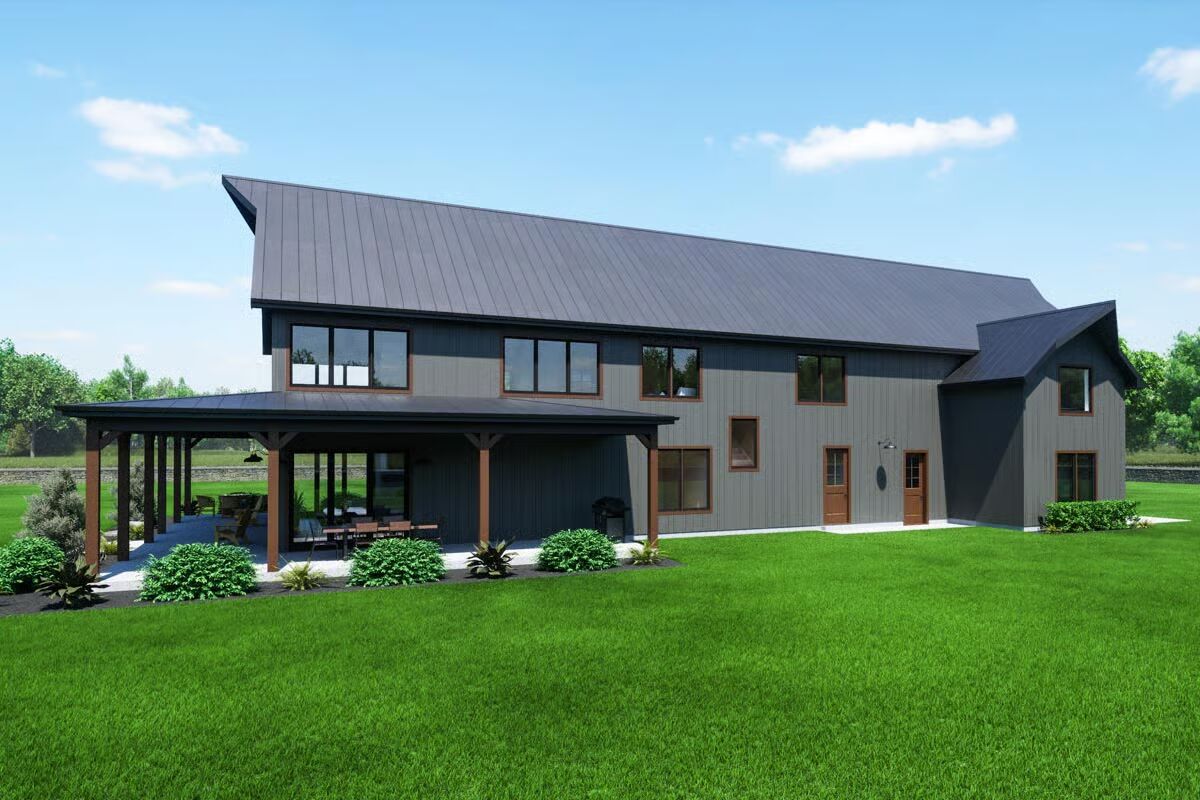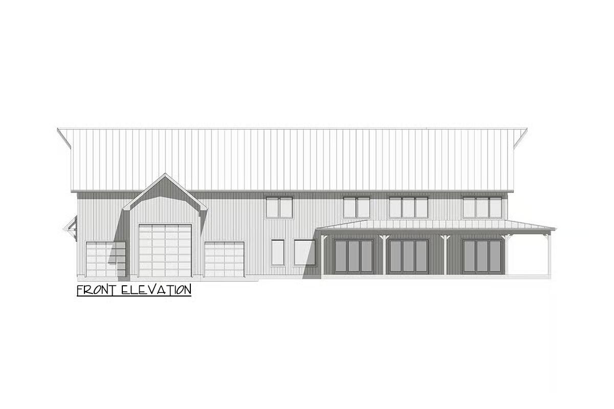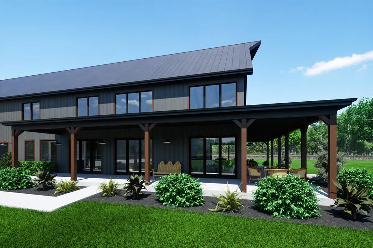 This thoughtfully designed plan combines versatility, comfort, and timeless style—perfect for families seeking space and function with barndominium-inspired charm.