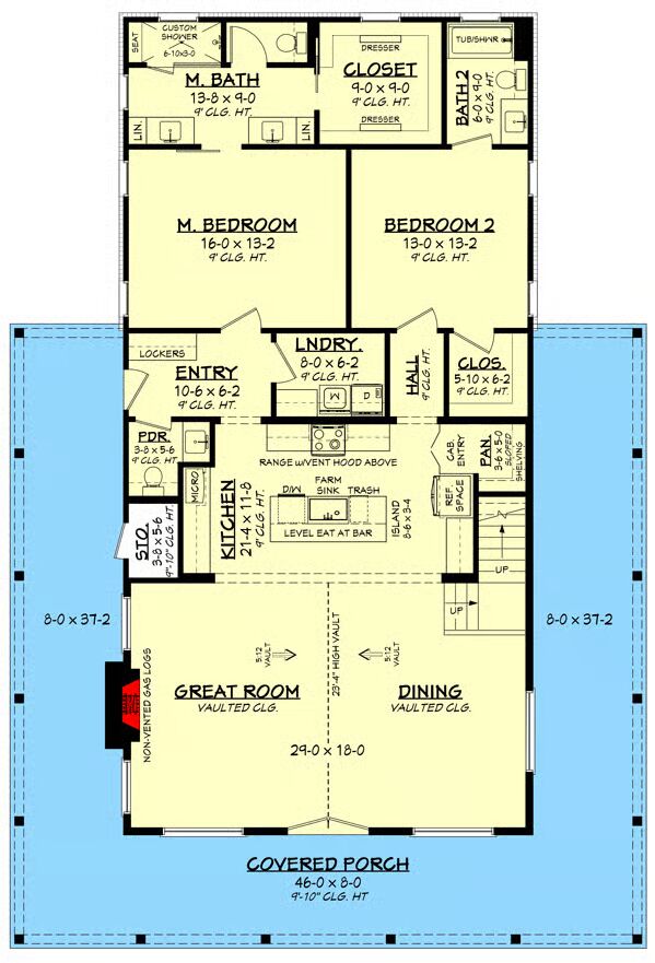 Step inside to a soaring two-story great room and dining area, where a vaulted ceiling enhances the open-concept design. The space flows seamlessly into the kitchen, which features a large eat-at island (6’6″ x 3’4″) and a walk-in pantry for added storage.