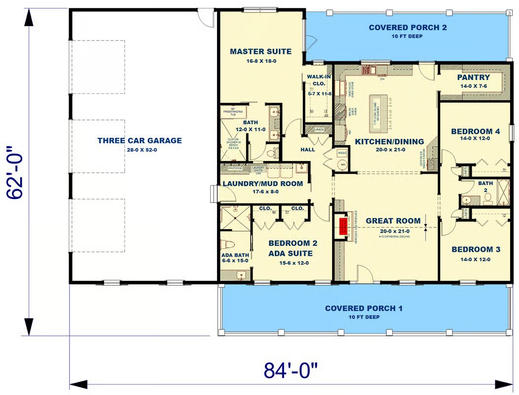 Welcome to the gallery of photos for the Barndominium House with Vaulted Great Room – 2519 Sq Ft. The floor plan is shown below: