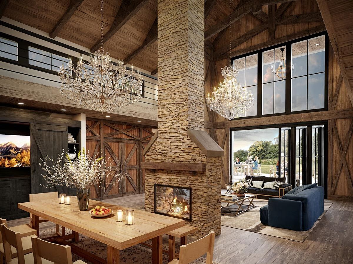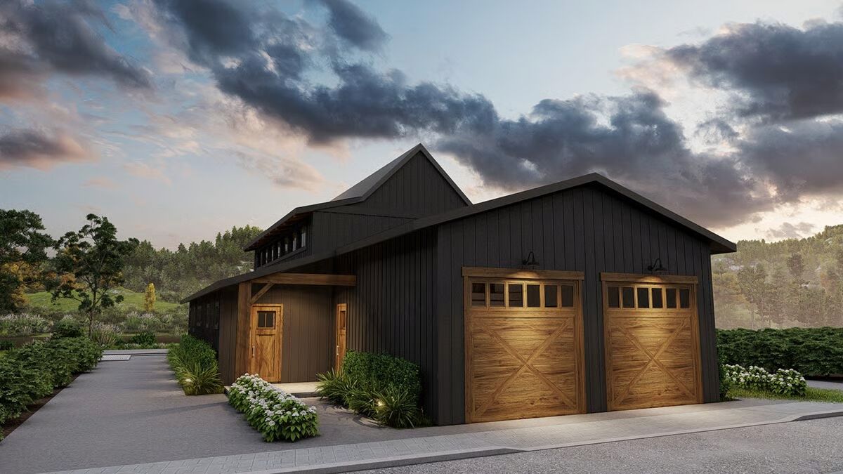 This barndominium-inspired house plan delivers a striking mix of rustic drama and light-filled living, offering versatile design options to suit your lifestyle.