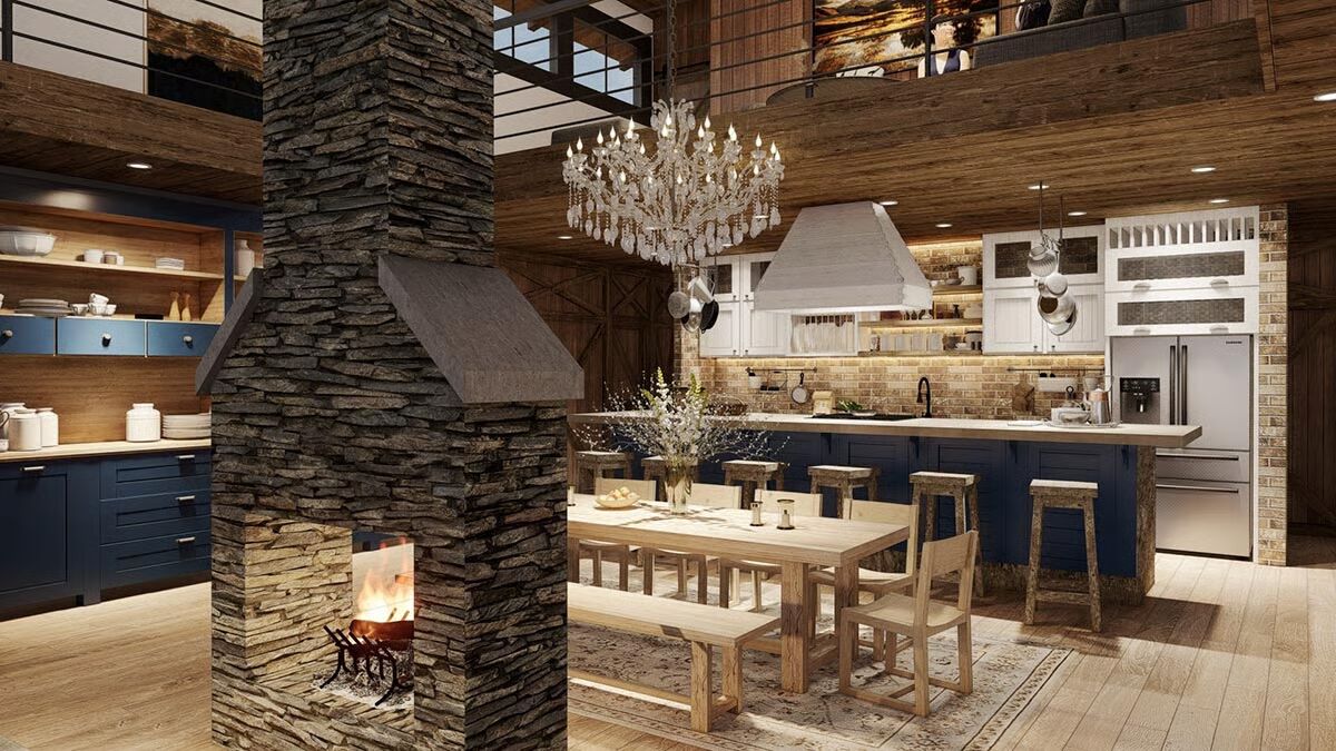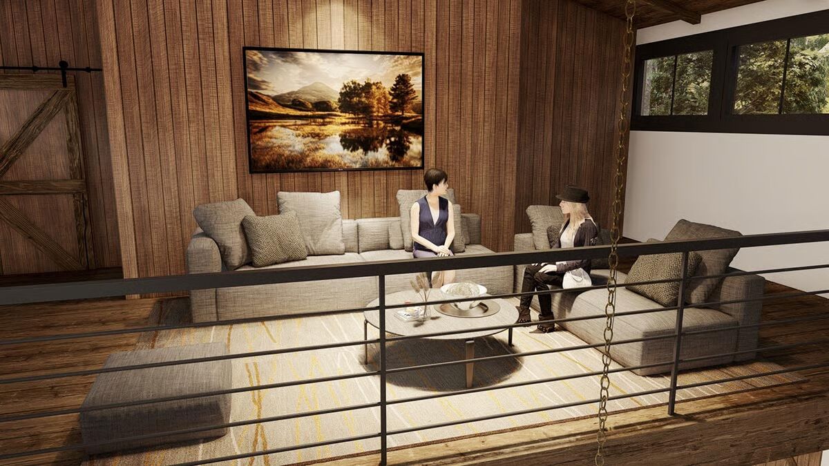 Behind the kitchen, stairs lead to a loft and gallery space overlooking the main living areas. With bridges designed for displaying collections and an open loft perfect for an office, studio, gym, or playroom, this flexible area adapts to your needs.