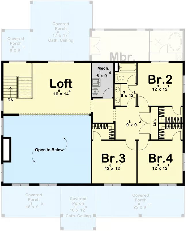 Upstairs, a loft overlooking the great room offers a flexible space—perfect as a reading nook, playroom, or casual lounge.