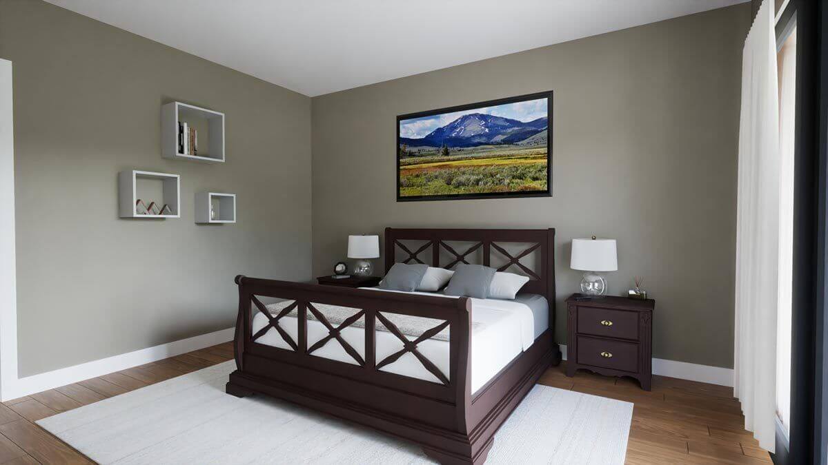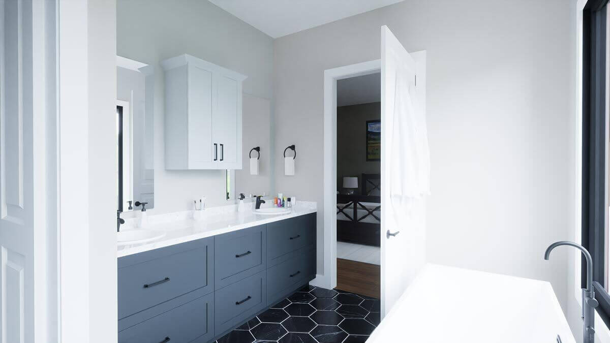 The master bedroom, conveniently positioned across the hall, is more than a sleeping quarter – it’s an experience. The direct access to the laundry room through a walk-in closet is a silent testimony to a design that prioritizes convenience without compromising elegance.