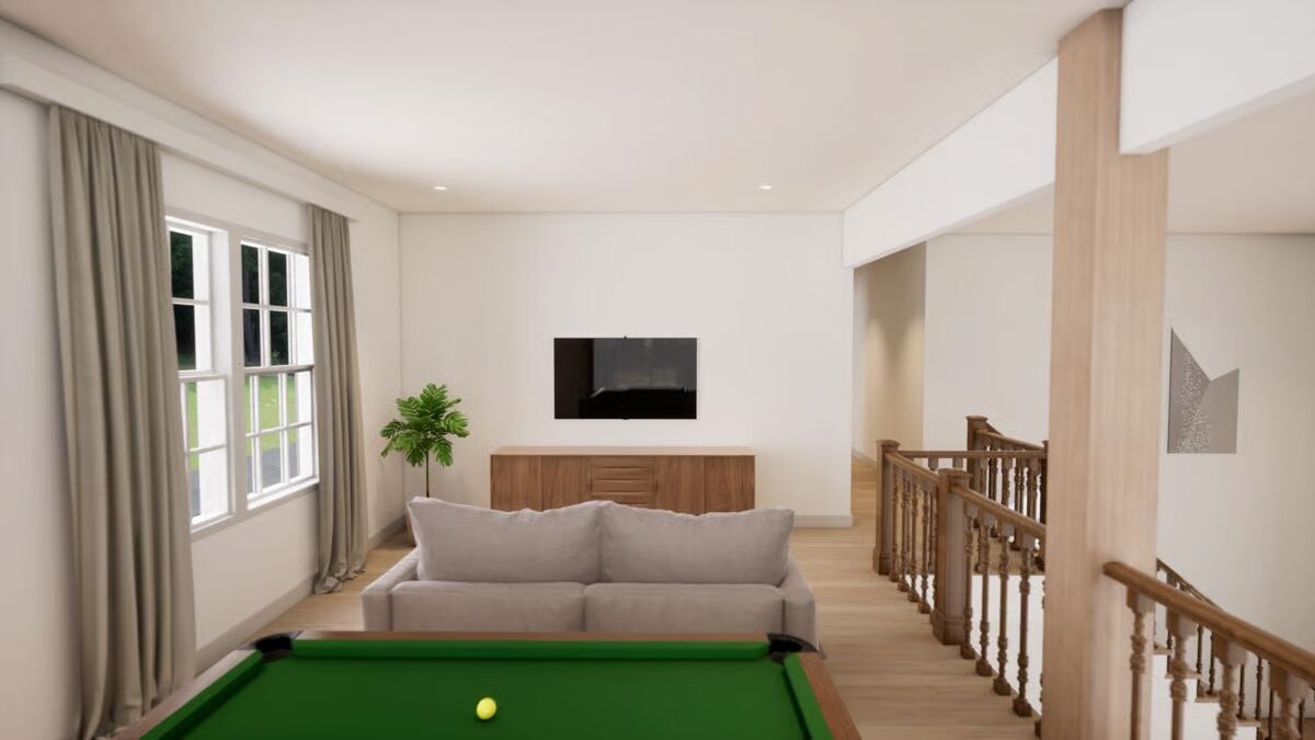 Upstairs, a loft-style game room overlooks the living area below. Bedroom 2 includes a private bath and walk-in closet, while Bedrooms 3 and 4 share a Jack-and-Jill bathroom, creating a functional and family-friendly layout.