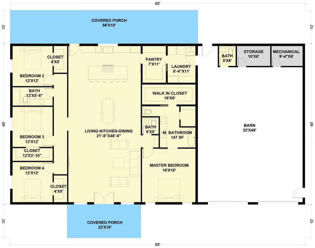=> Looking for a custom Barndominium floor plan? Click here to fill out our form, a member of our team will be in touch.