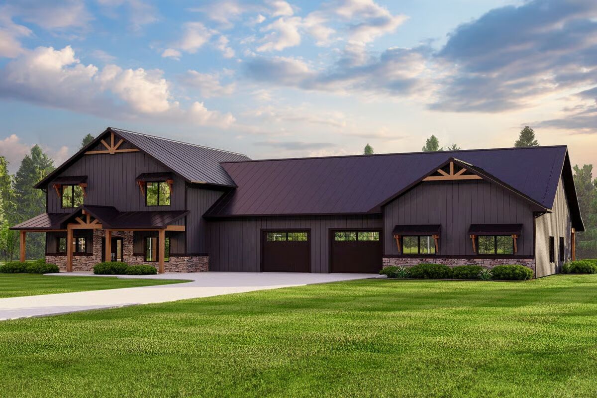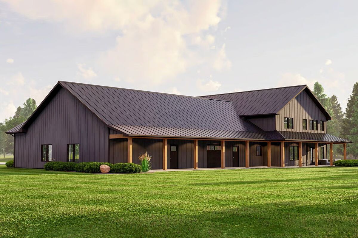 Perfect for families seeking flexibility, privacy, and functionality, this barndominium design balances rustic charm with modern convenience.